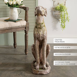 Introducing our majestic Sitting Greyhound Garden Statue! Standing proud at 30 inches tall, this regal canine is the paw-fect addition to your outdoor space! Picture this: your garden transformed into a whimsical kingdom, with this noble Greyhound reigning supreme!