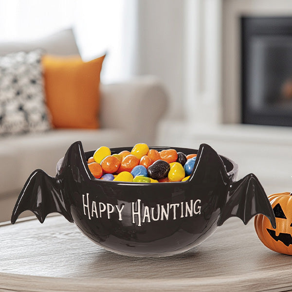 • Haunting Bat Candy Bowl: Bring a bit of mystery to your Halloween with this bat-shaped candy bowl. Its detailed design and sleek finish will make it a standout piece at your spooky celebration.
