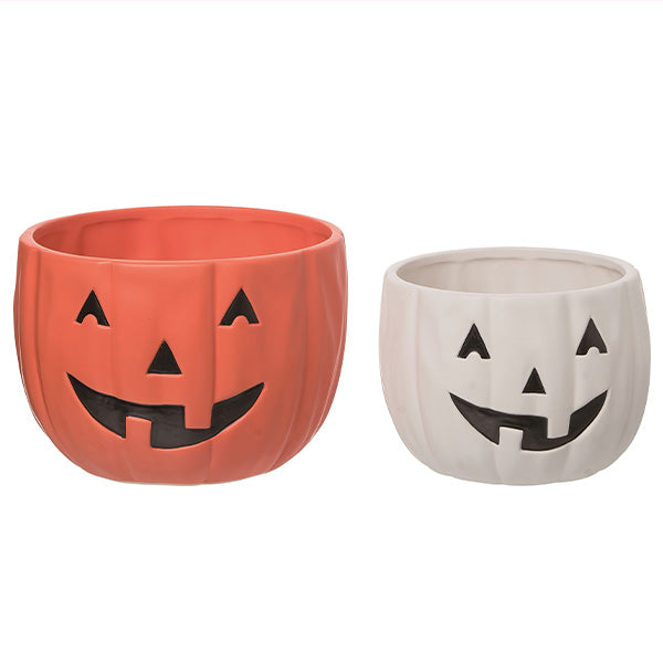 Jack-o-lantern Bowls, Set of Two: 8.5"W x 8.5"D x 5.5"H, each