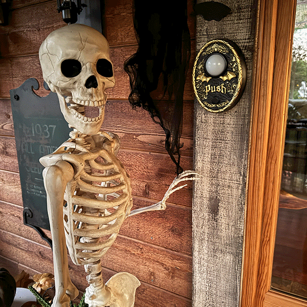 Eerie Sound Effects: It plays spooky sounds and speaks a different ghostly greeting each press (4 sayings) that are the perfect finishing touch for a truly haunted home: