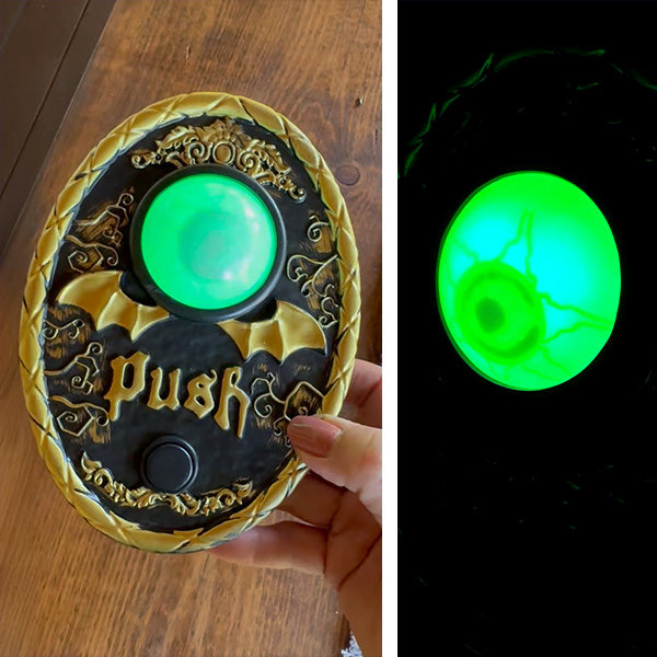 A Spooky Surprise: The button glows, and a creepy eyeball appears when pressed with a green eerie effect!