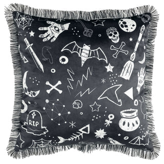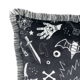 Decorate your home for a fun and classic Halloween look with this printed faux velvet pillow. The mischievous graphics featured on this Halloween Elements Decorative Pillow liven up your space for the holiday without being too spooky. A two-toned fringe edge gives this pillow a bit of extra texture and style.