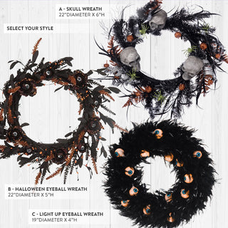 B: Halloween Eyeball Wreath - 22" Diameter x 5" H