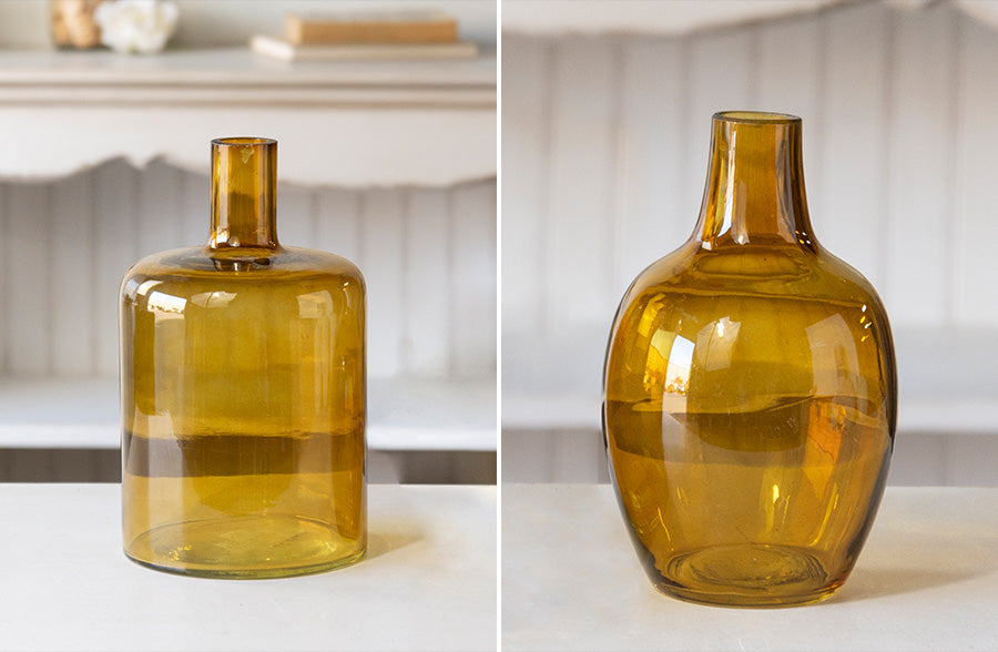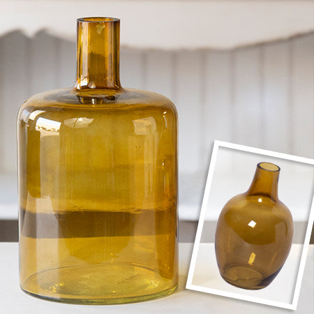 We are just head over heels with our newest piece! It EXUDES French country charm and elegance! Our Amber Glass Vase has been ALL over our favorite decor channels and magazines as it is SO popular right now!!