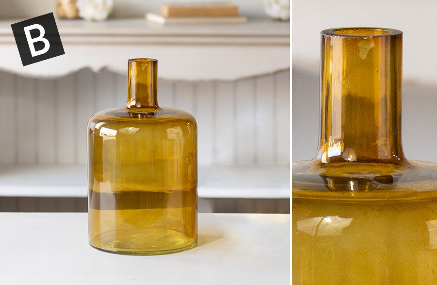 We are SO excited to be able to bring this amber glass vase piece to you at such an AFFORDABLE price!