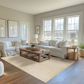 Elevate your space with the Hand Tufted Wavy Ivory Area Rug, designed to bring soft, textured elegance to any room. Its wavy pattern adds subtle movement while the plush ivory tone complements both modern and classic decor. Perfect for creating a cozy, inviting atmosphere, this rug is available in multiple sizes to fit your unique space. Style it under your dining table or in the living room to make a sophisticated statement that feels just as luxurious as it looks!