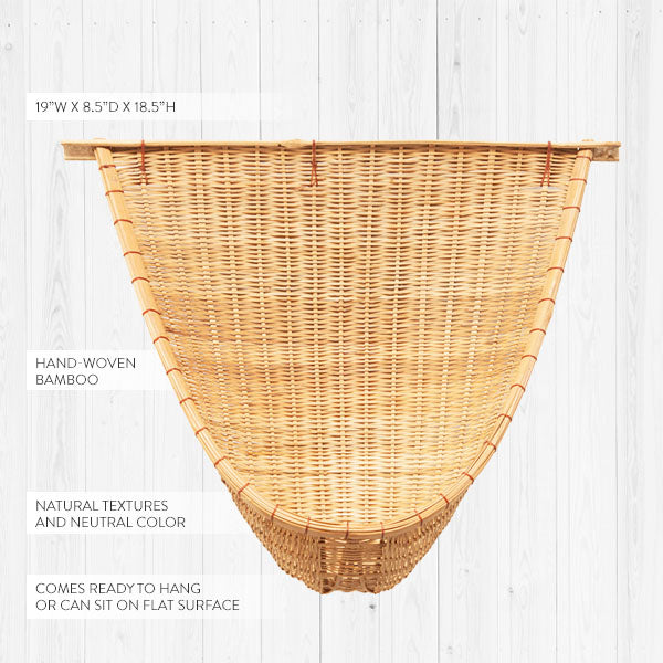Decorating can be hard... but we are making it EASY! The natural textures and neutral color of this bamboo harvesting basket allow it to fit into ANY decor space... Not to mention the perfect size! Oh, and the functionality is out of this world! This beauty can be hung on the wall OR sit on any flat surface! Lavender stems and wildflowers nestled in this beauty will add the burst of color you desire! Add holly and garlands during the holidays to create a warm and festive feel. This basket truly does it all! Hang this woven basket near your pantry and fill it with treats for the kids! The flat bottom of the basket allows for a unique table display too!