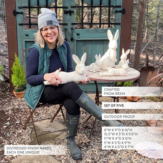 Hop into spring with our Handcrafted Terracotta-Inspired Bunny Sculptures! This set of five bunnies is full of rustic charm, each featuring a beautifully weathered finish that gives them a vintage, artisanal feel. Crafted from durable material, these bunnies are outdoor-proof, making them perfect for both indoor and outdoor displays!