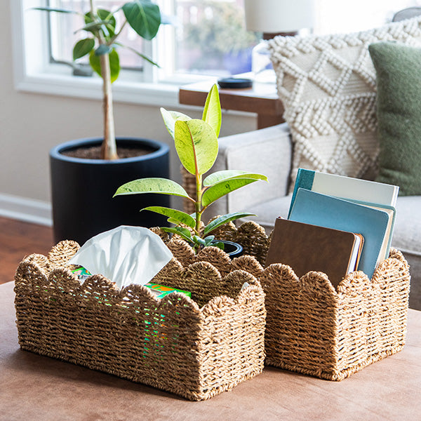 Scalloped edges are having a major moment right now—and we finally got our hands on a set that delivers the look without the boutique markup. These handwoven seagrass baskets bring that soft, wavy charm to every corner of your home.