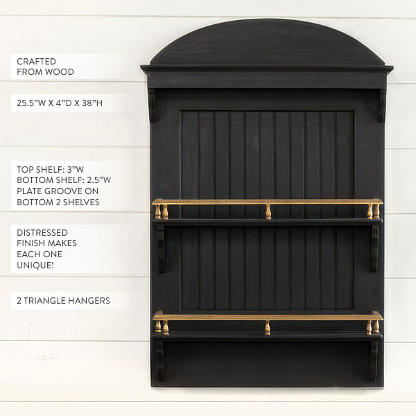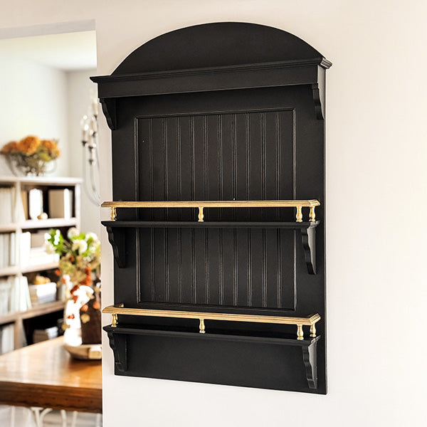 STOP! The plate display shelf of your dreams just arrived, and it’s not sticking around long! Our Harmony Wall Shelf is the perfect mix of farmhouse charm + modern elegance, and she’s ready to show off everything from your heirloom plates to your favorite seasonal décor. With its two lower grooves designed to keep plates standing tall, sleek black finish, and gold accents, this beauty makes any wall look instantly styled (with zero effort from you 👏).