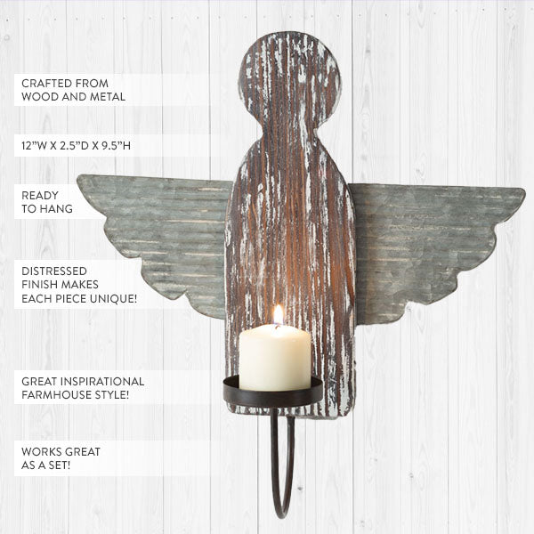 Our heads are spinning with all the million trillion ways to use this unique and sweet wall sconce! Place this on your entryway wall, in your living room beside your mantel, above a side table in your bedroom or even in an office! We love the vintage look of this with a spot for a candle that will create a subtle glow! The angel wings are so unique and will create a sense of serenity and peace in any space!