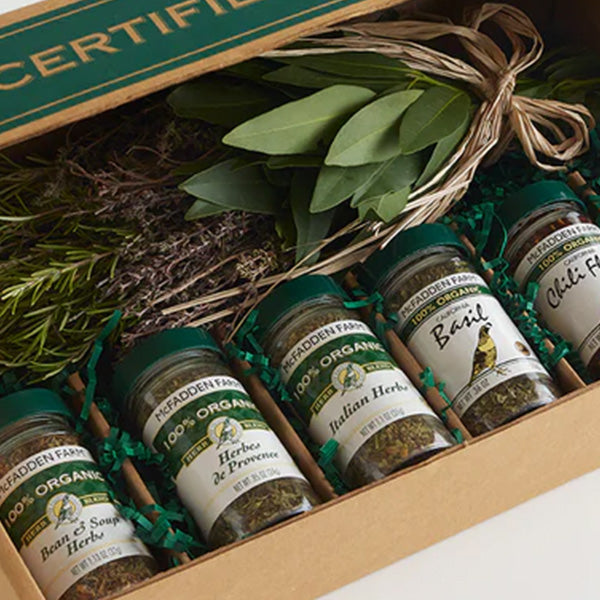 Introducing our US Grown Organic Herb Gift Box, Choose Your Size – the perfect culinary companion for cooking enthusiasts. Give the gift of flavor! This meticulously crafted selection of herbs, cultivated in the vibrant fields of California, is thoughtfully packaged in jars, ensuring a bountiful assortment of the most essential culinary herbs. It's truly the perfect gift for any host this holiday season... even if that's YOU!
