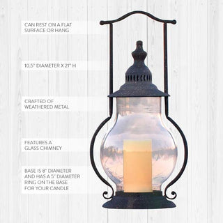 These beautiful lanterns are finished in a textured, dark grey patina to resemble the look of lanterns used in the 1700's. These exude beauty that sends us on a trip through time. Just picture these hanging from a tree to light up that summer dinner... standing tall on your mantel, on a porch lighting up a corner or even on top of your laughter-filled outdoor table...