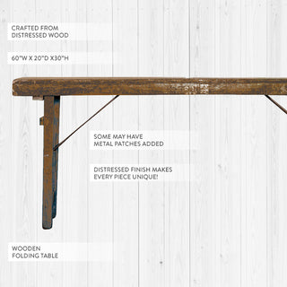 - This is a vintage-inspired wooden folding table that was used during village gatherings or wedding parties - inspired by a true piece of history!