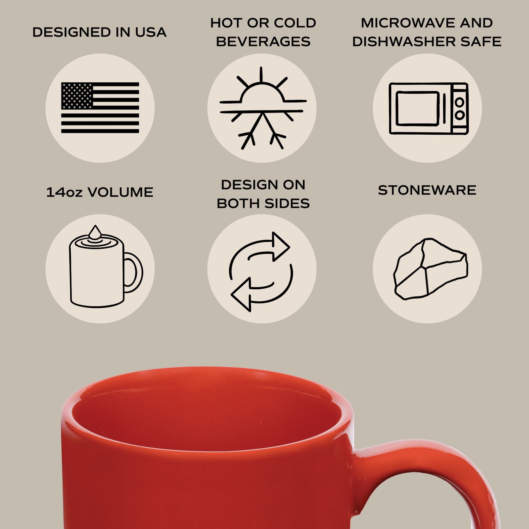 Make Christmas a little more cheerful this year with our Holiday Cheer red stoneware coffee mug. The sleek and modern design is crafted in red glazed stoneware with white debossed lettering, making it both stylish and durable. This festive Christmas coffee mug is perfect for morning coffee, afternoon tea, or a cup of hot cocoa by the fire. It's fun, beautiful and functional! Get one for yourself to bring some holiday cheer to your coffee bar or buy one as a Christmas gift!