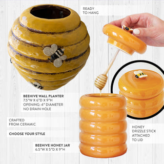 Honey Jar: 6.5"W x 5"D x 9"H - Packed: One Per Package (you will receive one Bee Decor of your style choice)