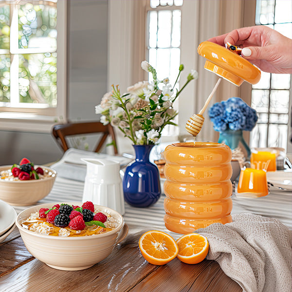 Honey Jar: Indulge in the golden goodness of honey with our adorable honey jar. Each jar comes equipped with a honey drizzle stick attached to the lid, making it easy to add a dollop of sweetness to your morning tea or drizzle over fresh biscuits. It's not just a jar; it's a hive of flavor waiting to be explored!