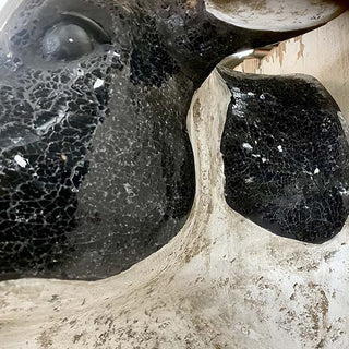 - Beautifully crafted from heavy estate stone and detailed to perfection - we just love the crackled shiny mosaic black spotting on her! It's just that extra touch she needed!