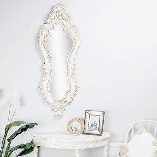 GOOD DAY STEALERS!!!! We could just BURST from excitement thinking about the beauty today’s steal will add to your home!!!! SERIOUSLY… We are THAT excited!!!! The gorgeous white distressed finish and intricate detail of this wall mirror is just what you need to make a GRAND statement in your farmhouse!!! Not to mention it’s huge!!! We’re talking 50” HUGE!!!