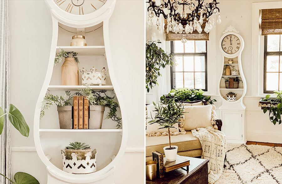 This timeless Mora clock is the perfect addition to any empty spaces! Add it to your kitchen to hold spices, hand towels, herbs and even recipes! We love the idea of using this piece in your living room to display family photos, succulents, or potted plants. Place one in the bathroom to hold hand towels and toiletries. The sky is truly the limit with this one...