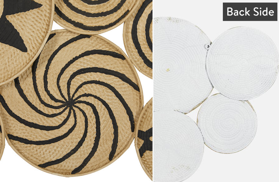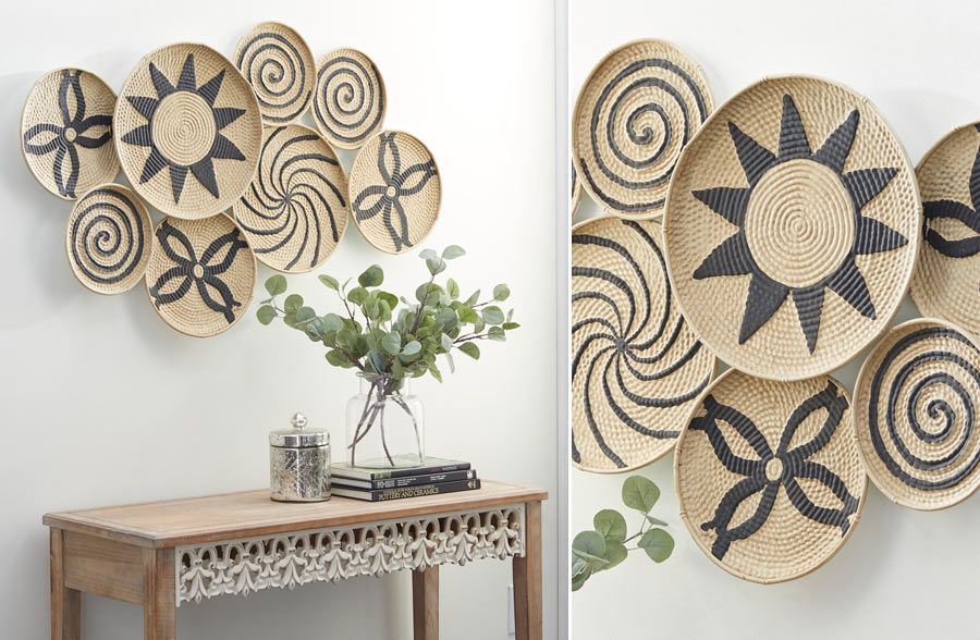- Beautifully crafted from textured metal that mimics the look of baskets