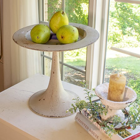 Take your decorative vignette to new heights with our Rustic Pedestal Stand. Crafted of metal, this display stand is distressed to perfection and has a pedestal style base. The beautifully aged look and cream finish coordinates well with your vintage farmhouse home while adding extra dimension as well.
