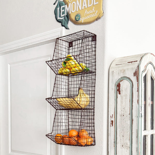 We’re swooning over the textured wire design, the generous depth, and the multi-use top shelf—perfect for showcasing décor or storing extras. Whether standing on a surface or mounted on the wall, it’s farmhouse perfection!