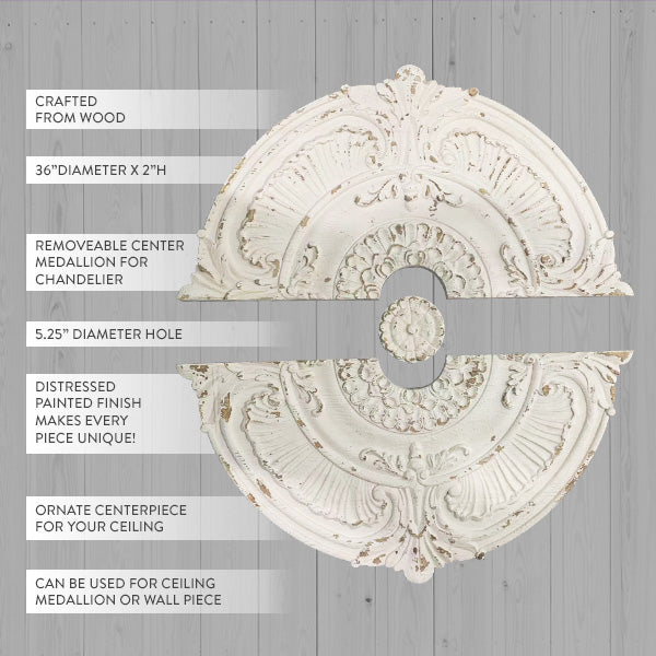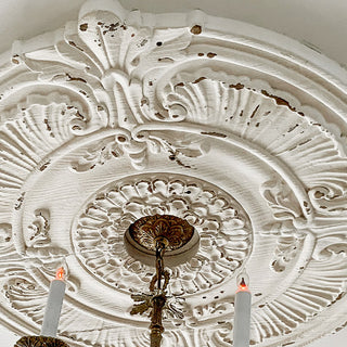 - Fall in Love with the Details: We absolutely love every single detail about this piece: The intricate design, the delicate chippiness, the huge size. Our ceiling medallion exudes so much elegance and charm.