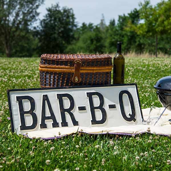 Dripping with character and charm the makers really knew what they were doing when they created this vintage beauty! With its distressed finish bold lettering and neutral look this black and white enamel barbecue sign compliments any style of décor and will be sure to give your farmhouse inspired home the finishing touch it’s been missing!