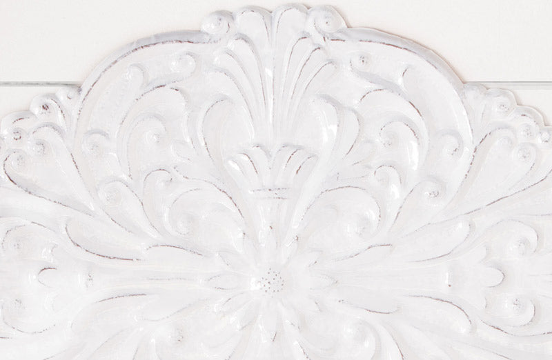 -Crafted of 100% Iron with Chippy White Finish and Scroll Detailing