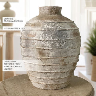 Our HUGE Hand Made Textured Vase has soooo much detail, you truly have to see it with your own eyes! You will be in AWE of the distressed perfection, the grand size, the amazing quality and how it is crafted to perfectly mimic an aged piece! This large vase will be the perfect accent to any farmhouse decor and come to you at a price that is truly unbeatable!