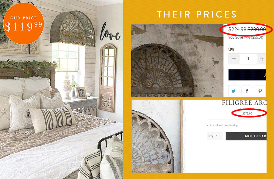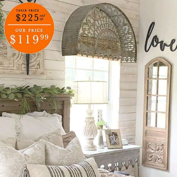 Can you say LOVE at first sight?! Our jaws dropped when we saw this HUGE historic metal arch wall decor piece! The aged metal with delicate cut-out details are so ornate and will become the best statement maker in your home! Oh and did we mention it sold out super fast last time we offered it?!