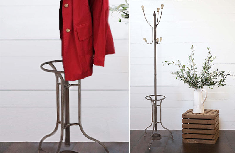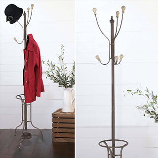 At six feet tall this old style coat rack is the perfect addition to your entryway mudroom or kitchen! Use this useful number and find a place for hats purses and scarves! You could even add it to your bedroom or a corner of the garage and find a spot for your coat at the end of a long day. AND did we mention this gem even has an umbrella holder?! The makers really knew what they were doing when they created this beauty.