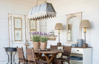 -Designer took elements of an old farmhouse porch to create this light fixture