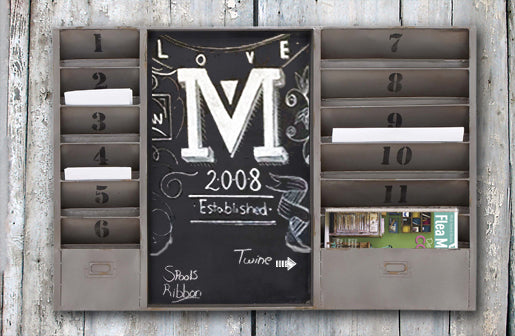 Inspired by the old postal organizers this piece with the added chalkboard is the perfect way to make life easier without jeopardizing your unique style. Numbered slots make it easy to separate and organize all of your receipts papers notes cards magazines mail and even the kid’s homework!