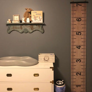 The designer was inspired by old vintage banners and was able to replicate them so beautifully... Add this HUGE Schoolhouse Growth Ruler in any of your rooms and you will get an immediate vintage feel and a ton of personality...