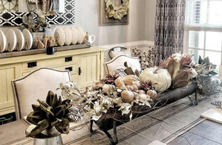 Just place our Trough Feeder Centerpiece on your dining room table or kitchen island to create a fun and unique centerpiece. We LOVE the idea of filling this trough with an abundance of your favorite flowers (Sunflowers Daffodils Hydrangeas Daises Lilies!) The color would add such natural beauty to your home!! Place it on your kitchen counter and fill it up with your favorite fruits and veggies OR place it in your bathroom as a fun and unique way to store your scented bar soap! The HUGE size of this trough makes it possible to store anything even candles or Halloween candy! You can even fill it with polypore and place it on your console table!