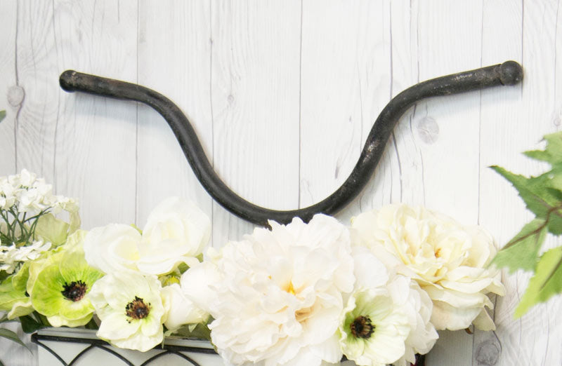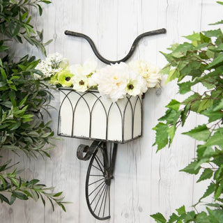 This piece of bicycle décor is filled with texture and vintage farm style cuteness. It'll be perfect in your foyer kitchen dining room mudroom or as a cute centerpiece in a child's room! Don't forget to fill the basket planter with your favorite florals or any type of farmhouse goodness! Heck you can even leave it empty to add more dimension to your space.