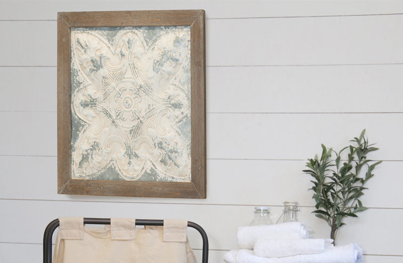 The worn metal bordered by distressed wood REALLY brings this piece together! It can light up any room! Whether you display it placed on your entryway table hang up in your office or show it off in your dining room it is sure to add some rustic charm!