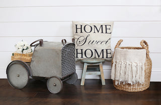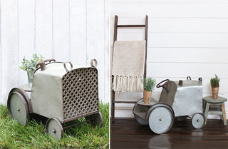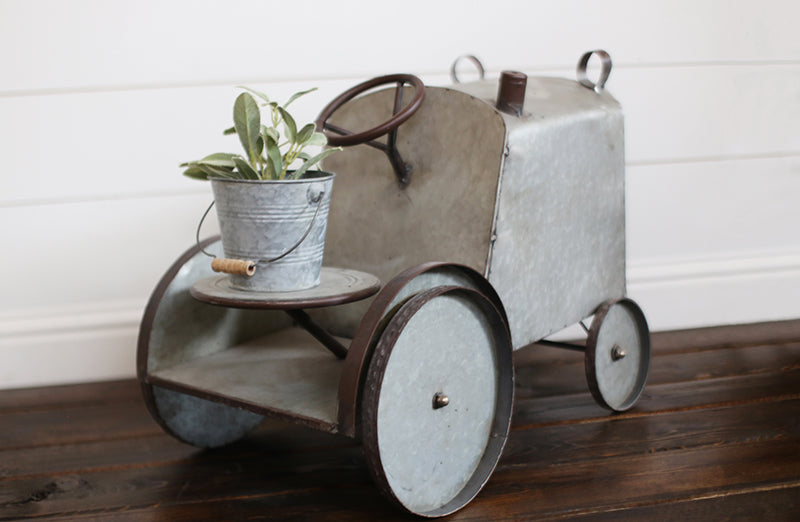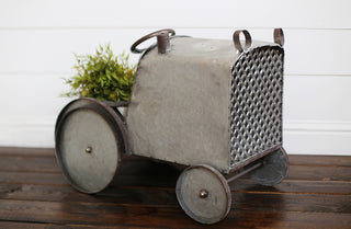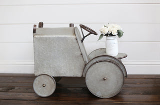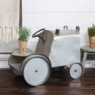 If you want a functional unique charming Classic Farmhouse look than this Galvanized Wheeled Tractor is for you. Use it to bring that farmhouse touch to everything you do: