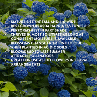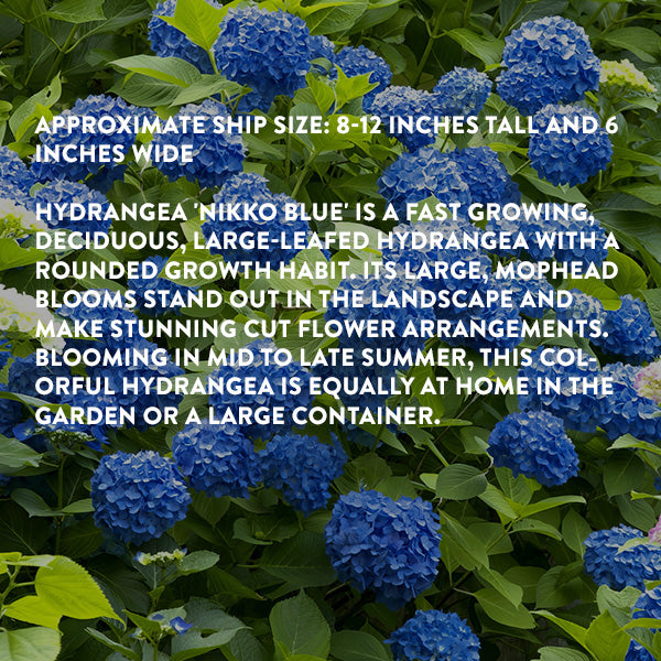 Hydrangea 'Nikko Blue' is a fast growing, deciduous, large-leafed hydrangea with a rounded growth habit. Its large, mophead blooms stand out in the landscape and make stunning cut flower arrangements. Blooming in mid to late summer, this colorful hydrangea is equally at home in the garden or a large container.