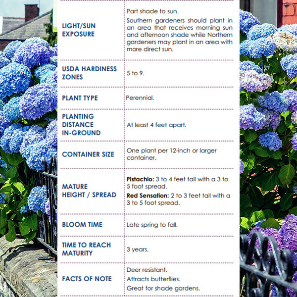 Planting Tip: Plant in morning sun and afternoon shade, and amend your soil based on the bloom color you want—add lime for pink or aluminum sulfate for blue. Prune lightly to encourage new blooms all season!