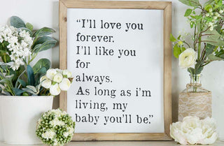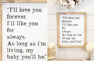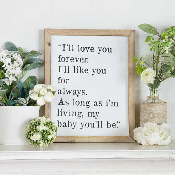 -Packed: One Per Package (you will receive ONE I’ll Love You Forever Sign)