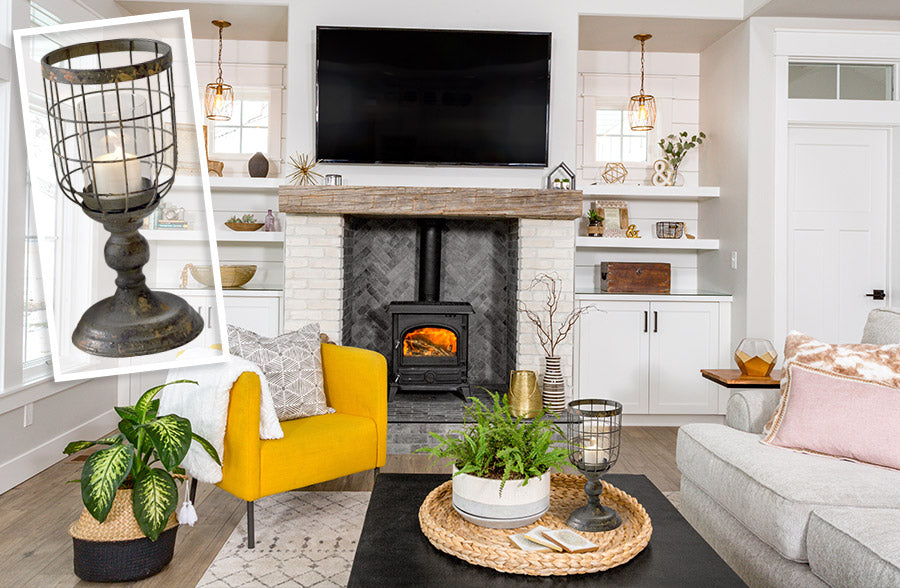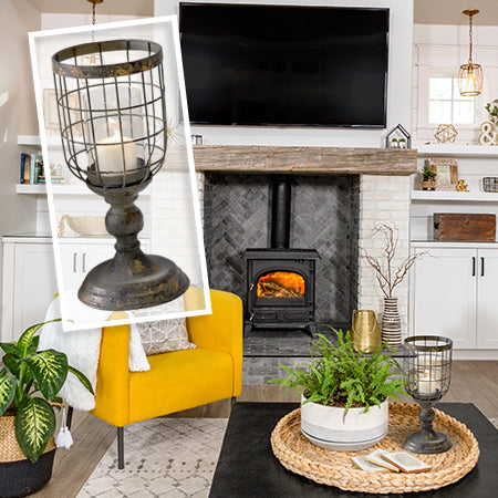 We ADORE everything about this piece. With every distressed piece of metal and GORGEOUS design, we can just see all the history it exudes! This candle goblet is dripping in farmhouse charm and personality and we know it’ll mesh into your home’s décor effortlessly. Style this beauty with a candle to give off a romantic and soft glow up on your mantel or side table in your living room! We can see this styled in your bathroom, on your dining room table, or entryway table to greet your guests! We can even see this placed on your kitchen counter to complement your coastal, industrial, or farmhouse look. The sky is the limit…