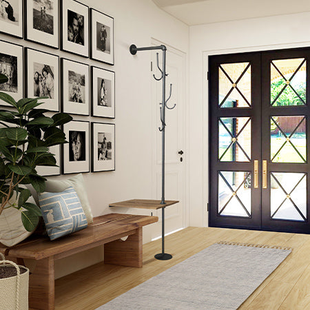 Dripping with character and vintage charm, our Industrial Coat Rack features a handy wooden table and is just what you NEED if you are as obsessed with organizing as we are!