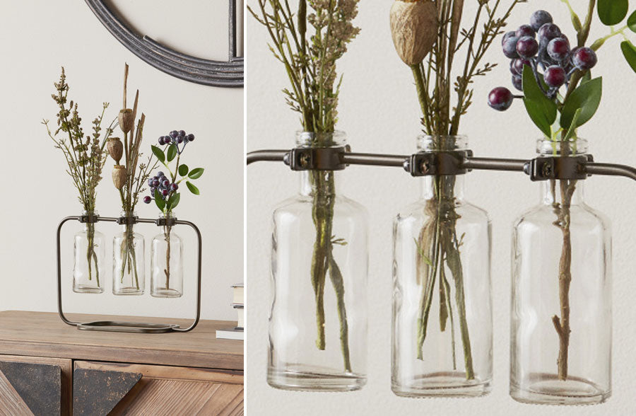 We are so in LOVE with this vintage-inspired hanging bottle vase set. The shape, size, design and functionality all speak stories to us…