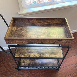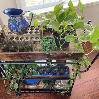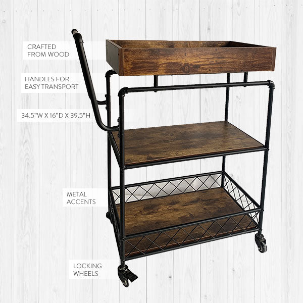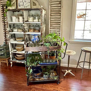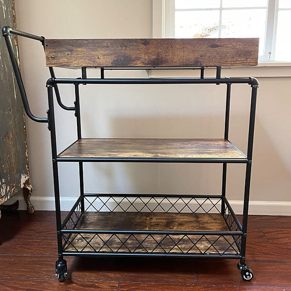 We're in LOVE with this AMAZING vintage-inspired Industrial Farmhouse Rolling Bar Cart! It’s THREE levels of AWESOME and gives you so much space for just about anything... and it’s BIG!! This Industrial Farmhouse Rolling Bar Cart is super functional and has charming farmhouse appeal! It’s on wheels, so you can easily motor it around to wherever your latest project is. Whether you are gathering supplies for a super cool craft project or just doing laundry, this cart will be your new best friend! This is the PERFECT solution for serving your guests drinks and appetizers at your next gathering! This steal will be a conversation starter! Park this rolling beauty just about anywhere that needs a little extra charm! We can imagine it in a foyer with a farmhouse vignette on top or maybe in the kitchen as an instant island or a unique side table in the bedroom...this piece has endless possibilities! Just a reminder…don’t forget to look at the price! I mean, it’s unbelievable and not to mention the $5 shipping!! :) Enjoy! PS - Check out how our friend @jagcagdesign used hers in the pics above!