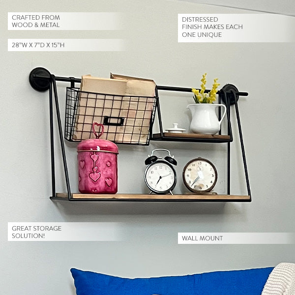 Listen up, beautiful stealers! Are you tired of your stuff just... existing everywhere? Like, literally EVERYWHERE? Well, buckle up buttercup, because this Industrial Metal Shelf with Basket is about to become your home's superhero!