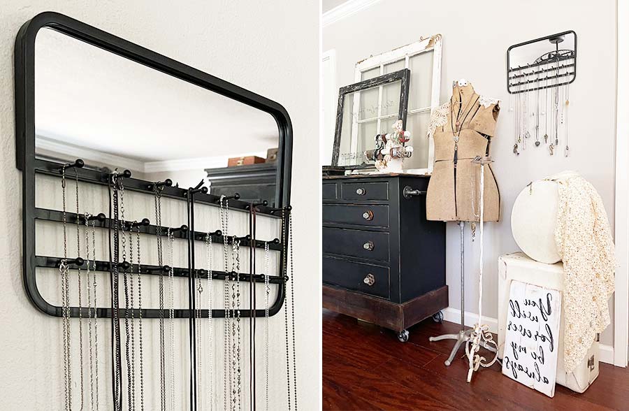 This combination of metal and glass in this Industrial Mirror Jewelry Organizer has such a unique look and SO much charm! This is truly the PERFECT accent for any room in your home... AND it's SOO functional! This piece will have you organized in no time!
