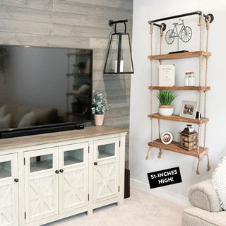 - Beautifully crafted from wood shelves, rope, and an industrial pipe metal top frame
